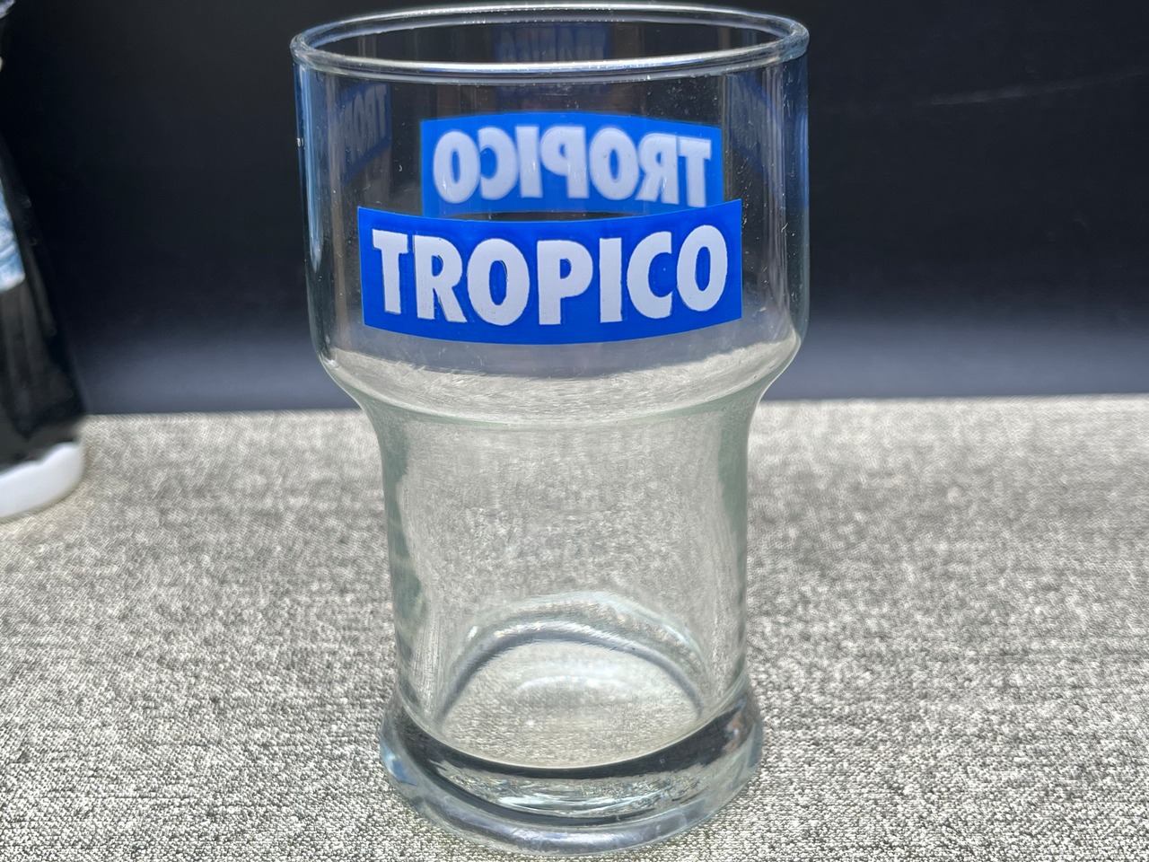 ブルーのロゴが鮮やかな、フランスのトロピカルジュースブランド「Tropico」の販促グラス。ユニークな形状のボディが特徴で、実用性はもちろんコレクション性も高い逸品です。